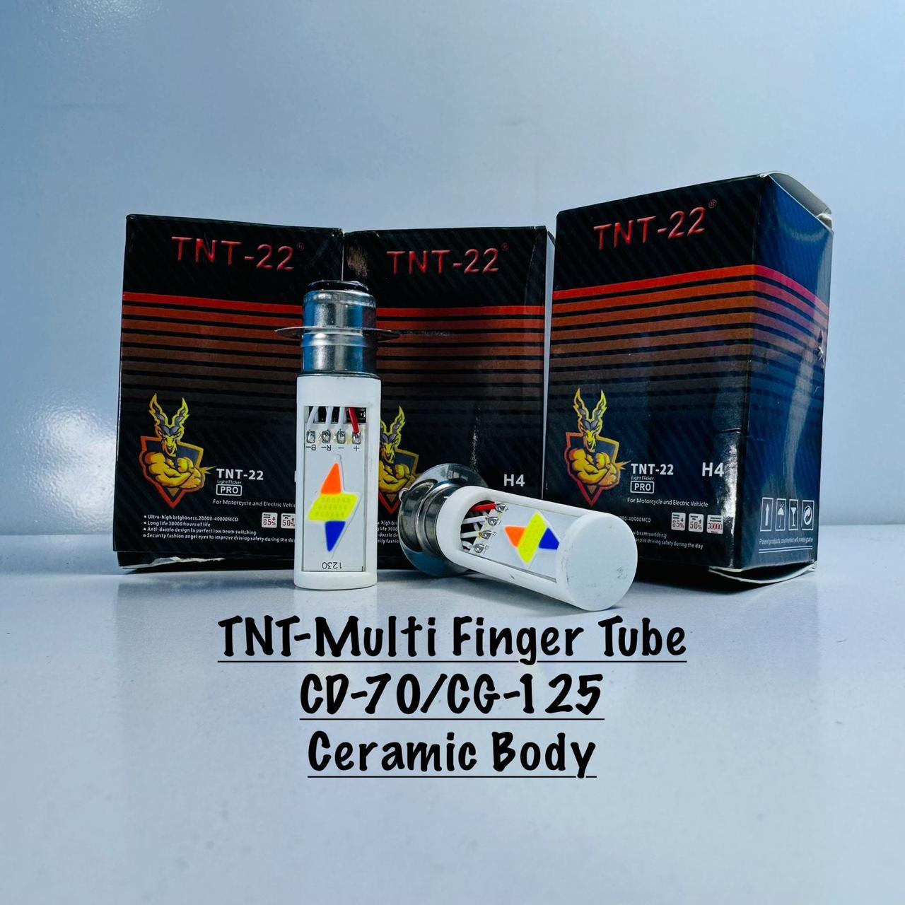 TNT-22 PRO Multi Finger Tube LED is designed for motorcycles like CD-70 and CG-125. It features a durable ceramic body and bright multi-color LED chips for enhanced visibility.