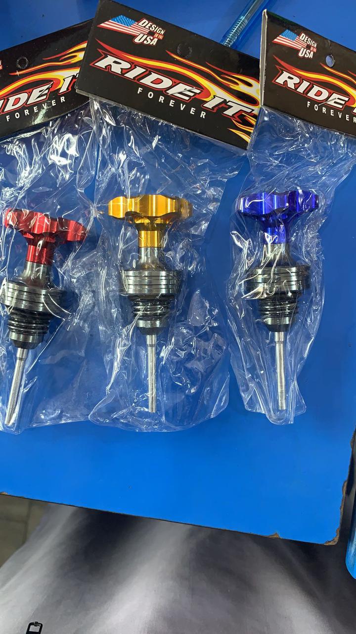Motorcycle Oil Gauge – High-quality aluminum alloy cap with integrated oil dipstick for accurate oil level checking. Available in stylish red, gold, and blue finishes, it adds durability and a premium look to your bike. Easy to install and designed for long-lasting performance.